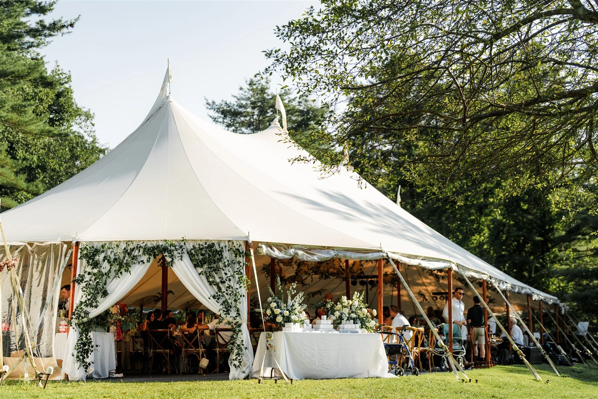 After your on-site ceremony, greet your guests during cocktail hour on the lush and expansive lawn with Mirror Pond as its centerpiece. Continue the festivities under our custom Sperry tent, providing all-weather comfort for 75 to 200 guests. Feast on a traditional Maine Lobster Bake with all the trimmings or select from myriad catering options to match every taste and mood. Enjoy music and dancing before cruising back to Portland or spending a romantic wedding night nearby at the luxurious Inn at Diamond Cove. We host weddings from June through early October.